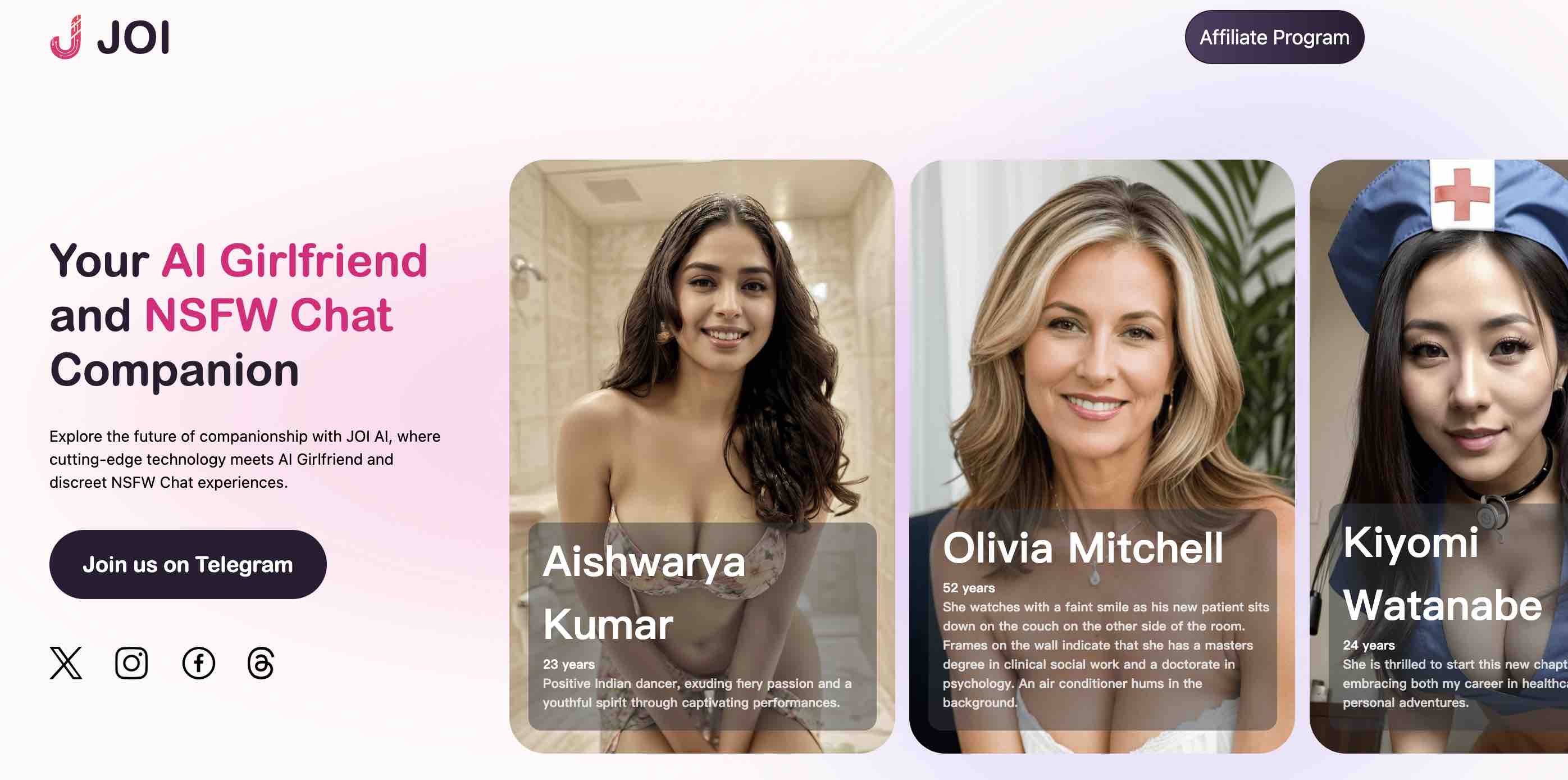 JOI AI is a platform belonging to the AI girlfriend category, and what distinguishes it from others is Telegram.